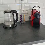 Oprócz urządzenia do parzenia kawy/herbaty, do dyspozycji Gości jest również wyposażona kuchnia z własnym wyżywieniem, w tym kuchenką mikrofalową, czajnikami elektrycznymi i lodówką.